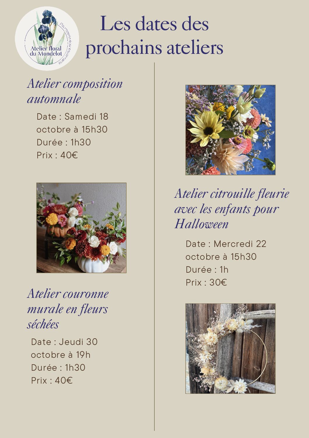 - Samedi 18 Octobre à 15h30, atelier composition florale automnale, 40€