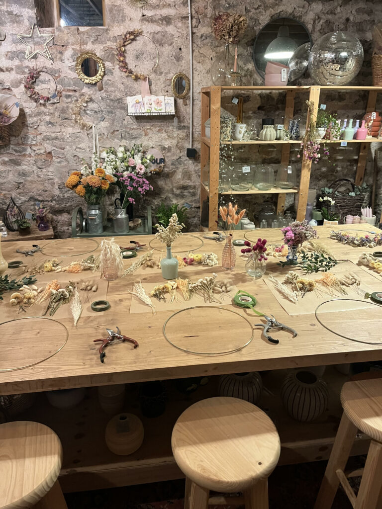 Atelier couronne murale en fleurs séchées pour un anniversaire
